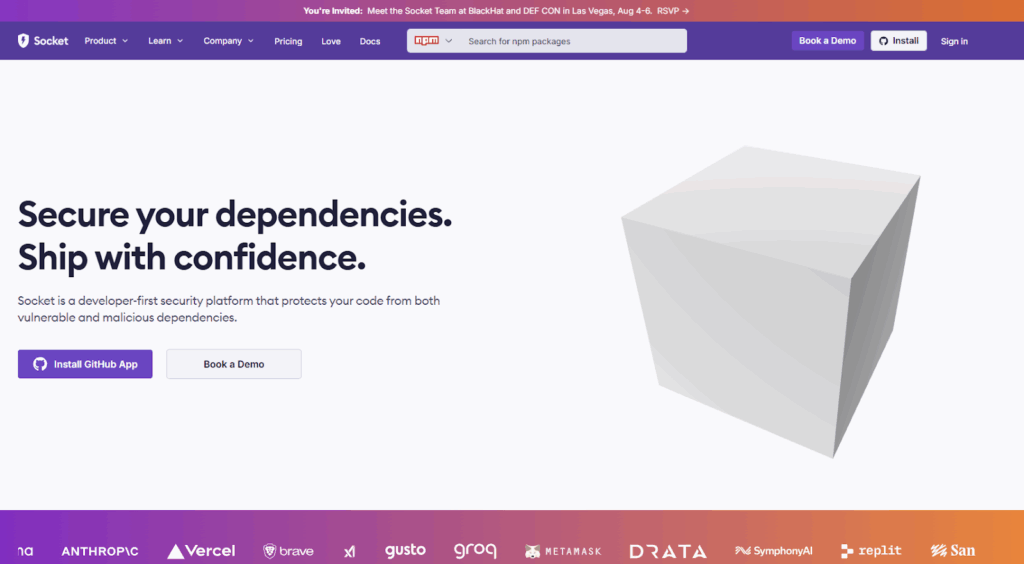 Socket.dev inspects packages pre-installation for signs of malicious behavior, such as obfuscation and unauthorized network access, providing proactive supply chain risk detection.